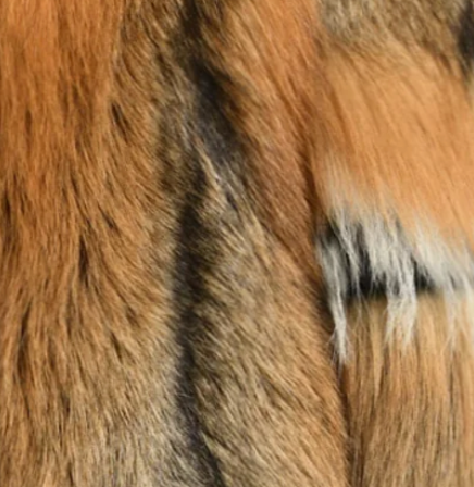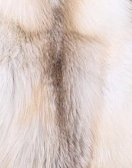 Close up of a full pelt Gold Crossed Fox Fur Coat, exuding sophistication and bold winter style, crafted for sub-zero conditions.