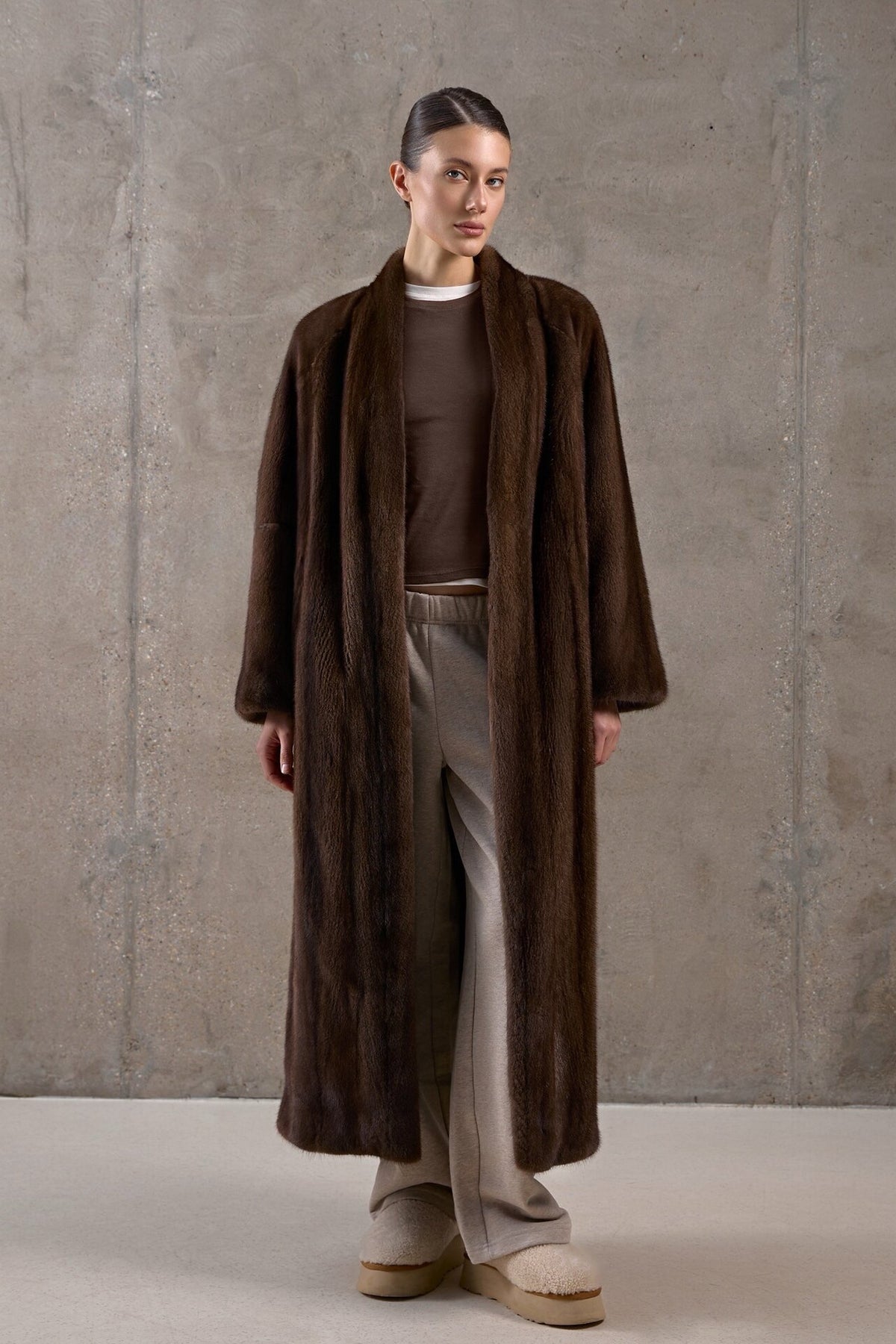 Wrap yourself in opulence with this long genuine Mink Coat, a true expression of timeless luxury. Expertly crafted from the finest genuine mink fur, its rich hue enhances the coat’s natural luster and unmatched softness. The full-length silhouette drapes gracefully, offering both exceptional warmth and refined elegance.