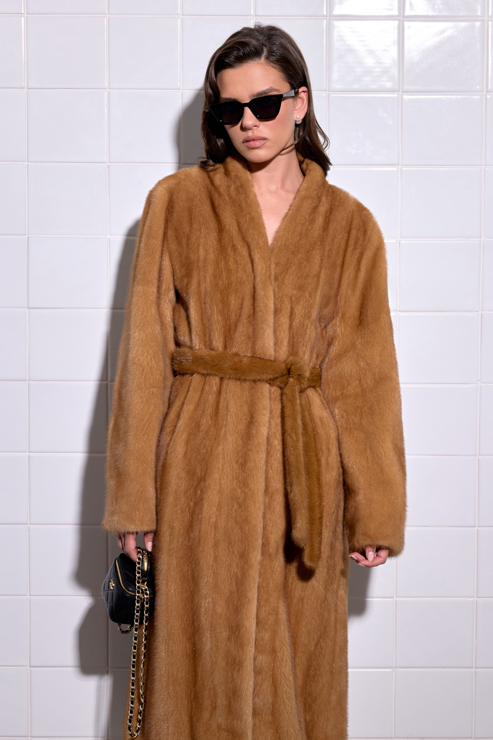 Wrap yourself in opulence with this long Brown Mink Coat, a true expression of timeless luxury. Expertly crafted from the finest genuine mink fur, its rich hue enhances the coat’s natural luster and unmatched softness. The full-length silhouette drapes gracefully, offering both exceptional warmth and refined elegance.